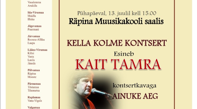 * 13. juuli Kait Tamra kontsertkavaga “Ainuke aeg”
